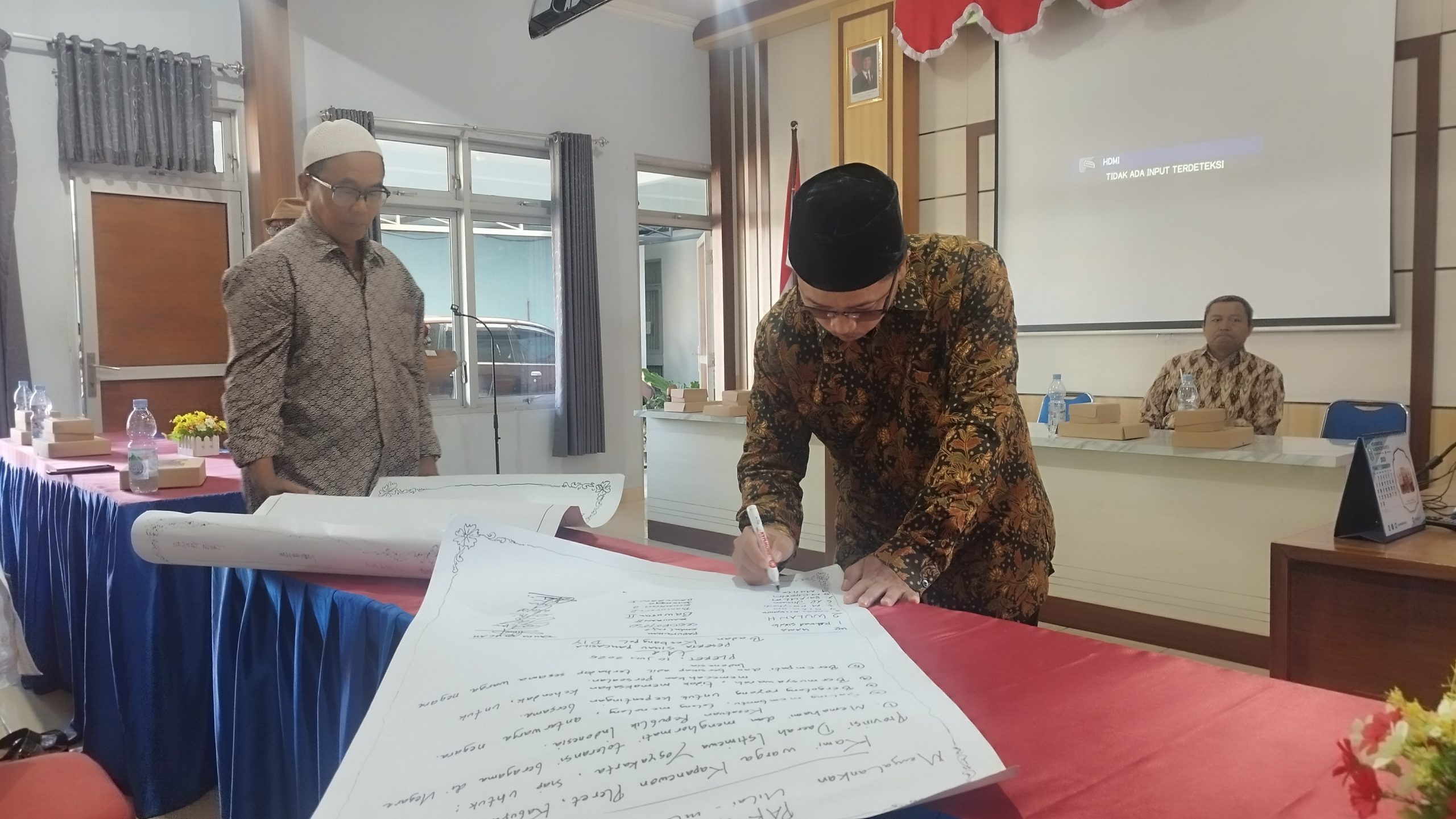 Salah satu warga Pleret menandatangani kesiapan menjadi motor penggerak pelaksanaan nilai-nilai Pancasila. (Foto: Ilyasi)