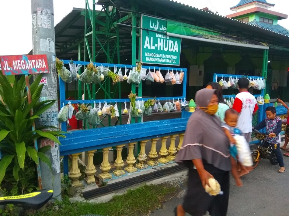 Pada Jumat (19/2/2021) pukul 05.00, berbagai bungkusan sayur, buah, lauk, dan bumbu dapur sudah tercenthel di pagar depan Masjid Al Huda. Warga yang membutuhkan mengambil bungkusan yang diperlukan. Biasanya sampai pukul 07.30 bungkusan kebutuhan rumah tangga itu sudah habis dimanfaatkan warga.
