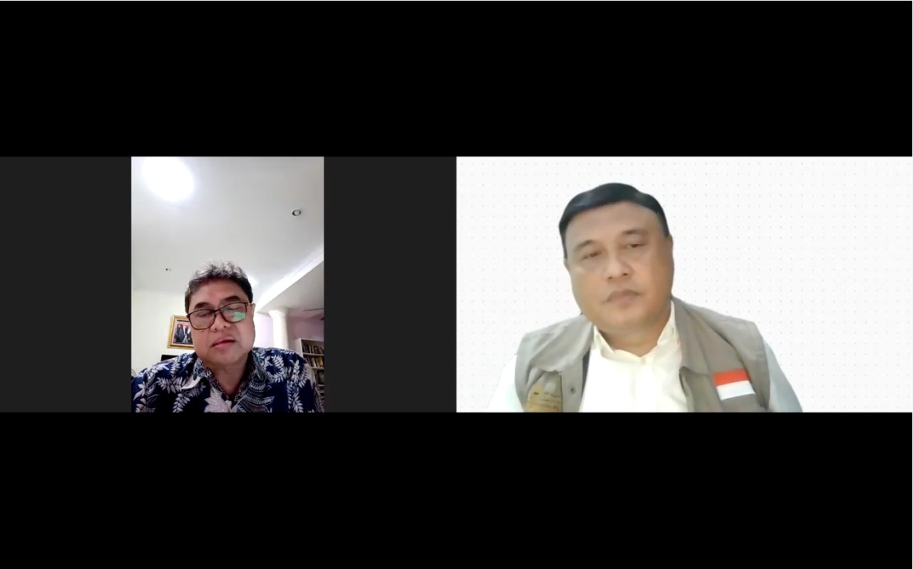 Ketua Bidang Luar Negeri SMSI Aat Surya Safaat (kanan) pada Webinar Internasional, Senin malam 16 Mei 2022 terkait adanya kasus penembakan wartawati Palestina Shireen Abu Akleh yang diduga dilakukan tentara Zionis Israel di Jenin Tepi Barat Palestina pada 11 Mei 2022 (Foto: Istimewa)