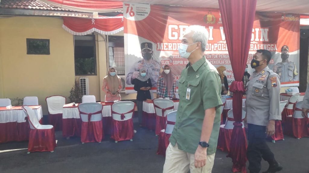 PURBALINGGA – Gubernur Jawa Tengah Ganjar Pranowo meninjau pelaksanaan vaksinasi merdeka candi di Polres Purbalingga….