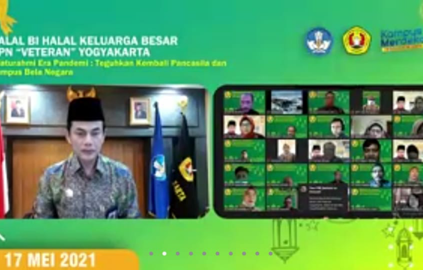 SLEMAN – Keluarga besar civitas akademika Universitas Pembangunan Nasional “Veteran” Yogyakarta (UPNVY) melaksanakan kegiatan halal bi halal secara virtual, Senin 17 Mei 2021.